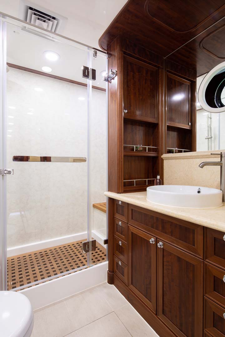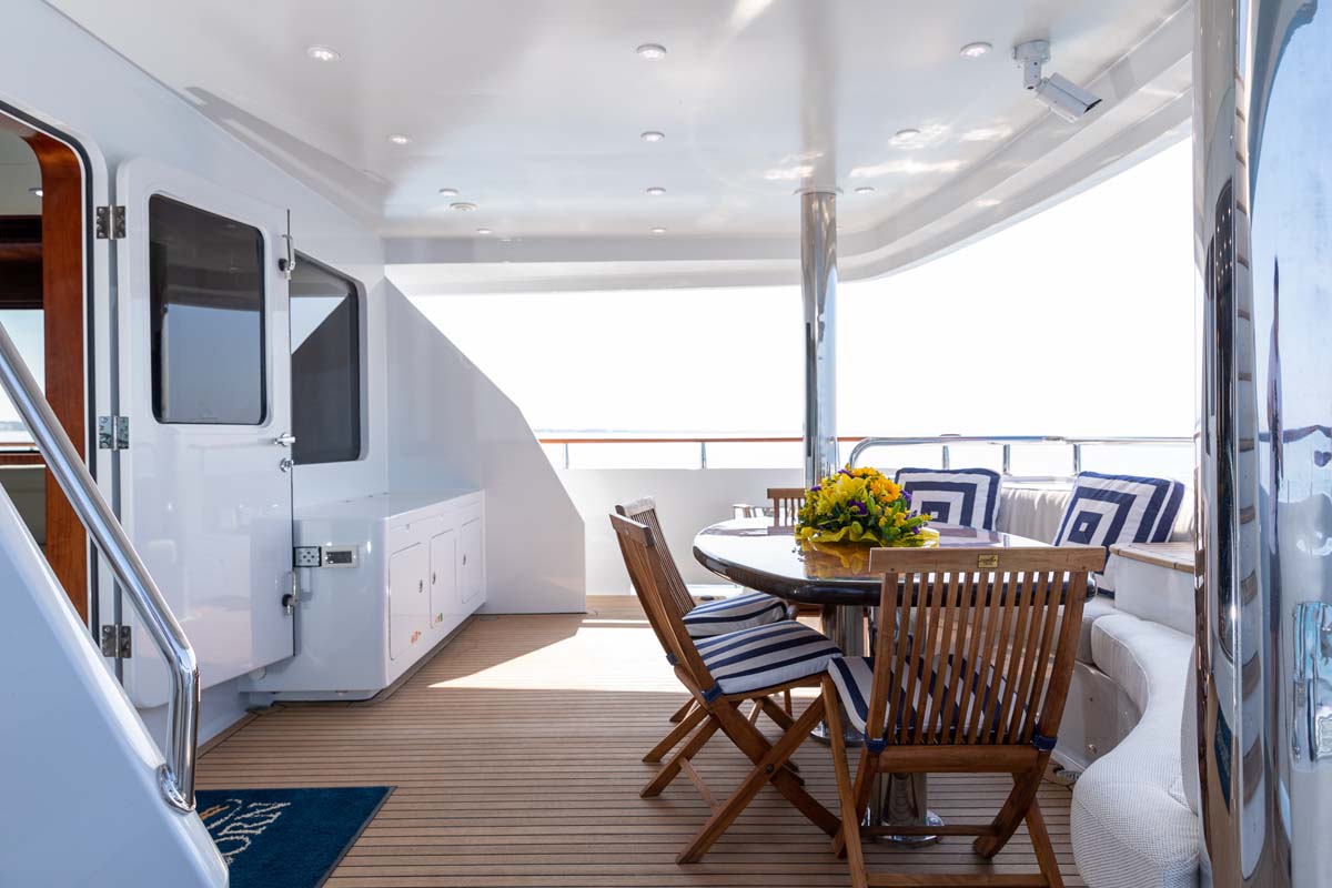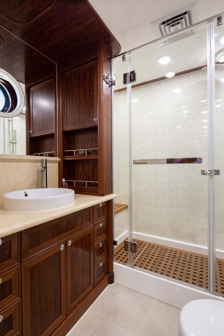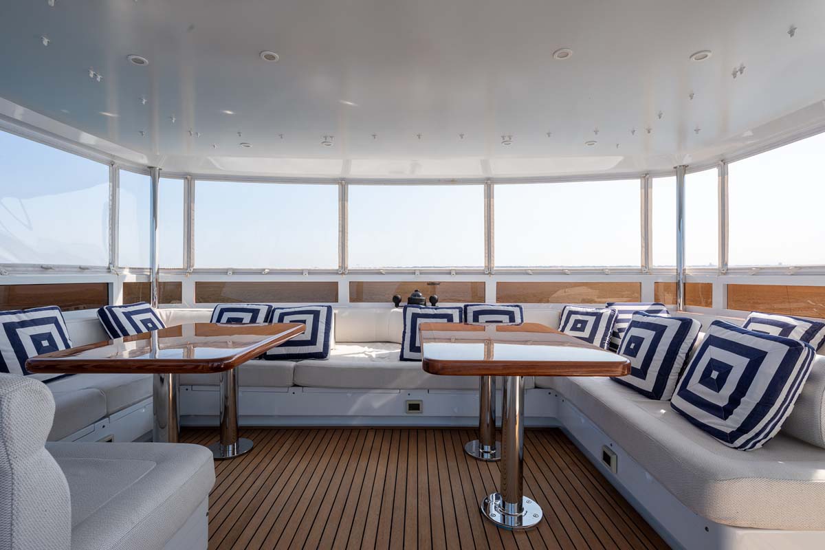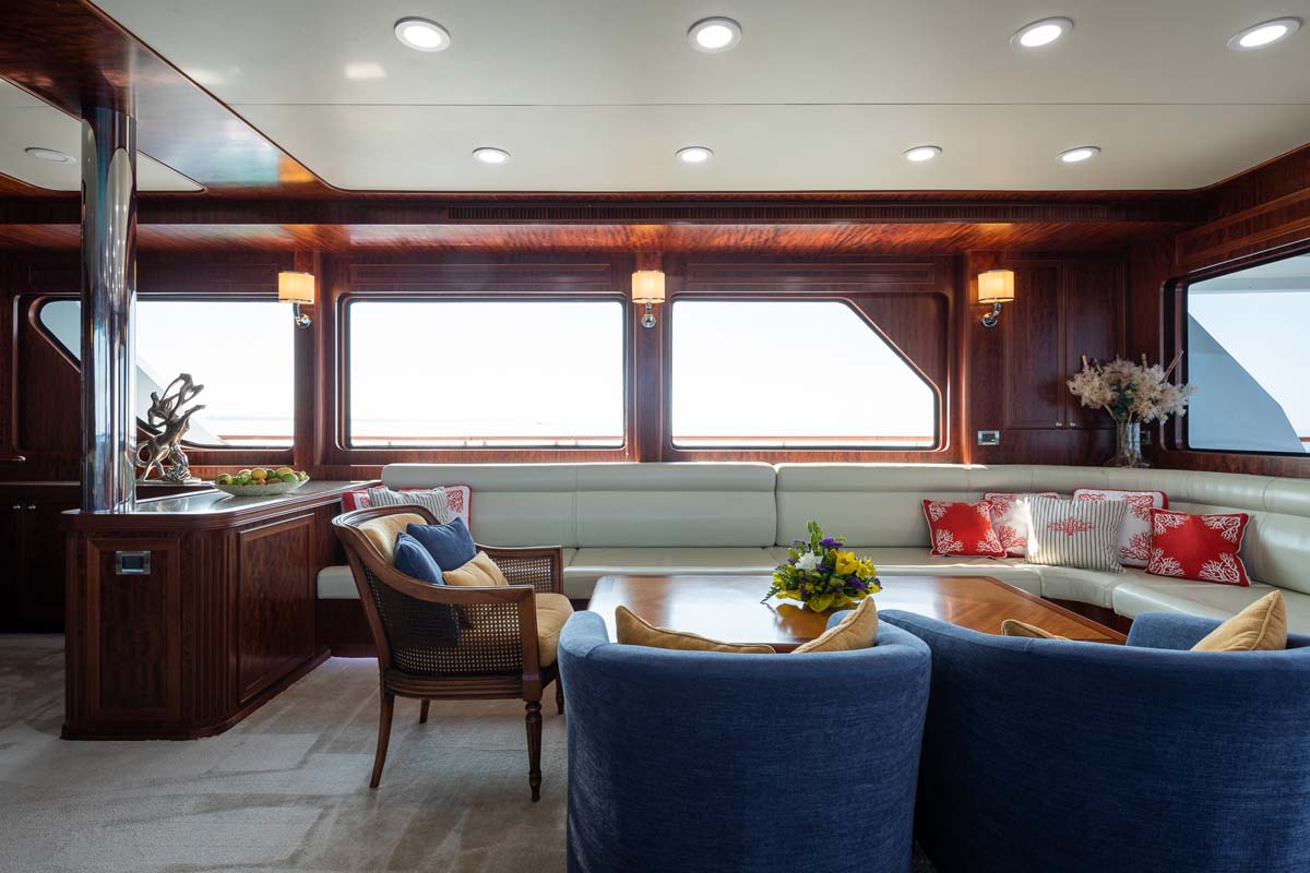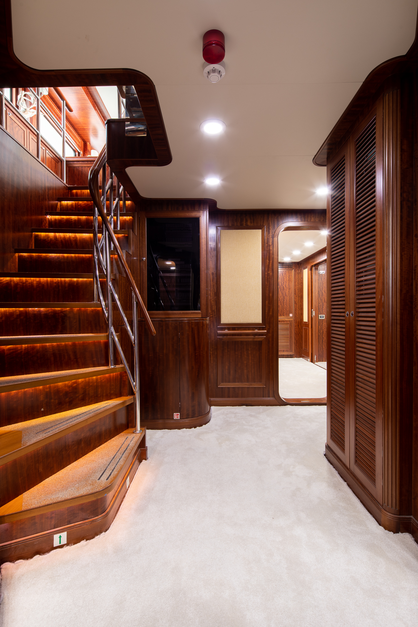 - 03 — 03 Three decks unfold into a layout that feels unexpectedly expansive for her size. Generous interior volume and a solid build create a sense of space more often associated with much larger yachts
