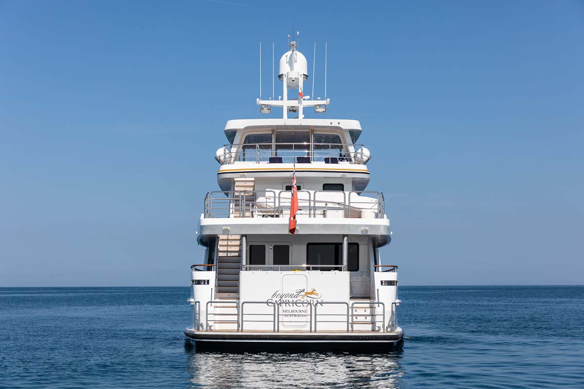 - 02 — 03 Registered below 24 metres, BEYOND CAPRICORN can anchor in places that larger yachts can’t. She opens the doors to quieter bays, closer shorelines, and a more intimate cruising experience
