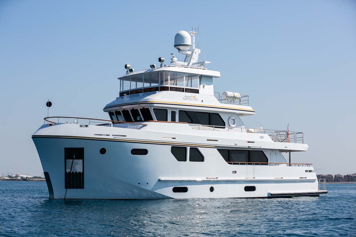 BEYOND CAPRICORN brings the spirit of an explorer yacht into a highly accessible 24-metre format. Built by Bering Yachts in 2017, she is a rare tri-deck yacht in this size range, creating a sense of space more often associated with larger vessels.