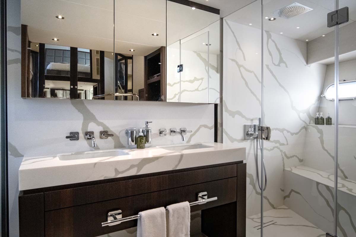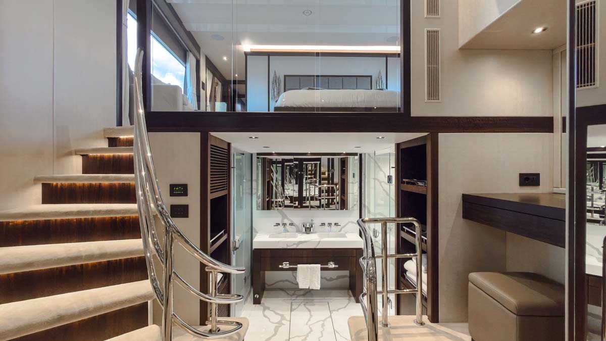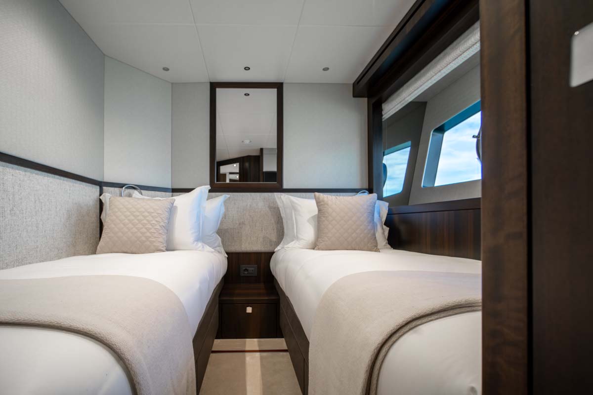 - 03 — 03 Five well-balanced staterooms are finished to the same high standard, ensuring consistent comfort and privacy for every guest on board.