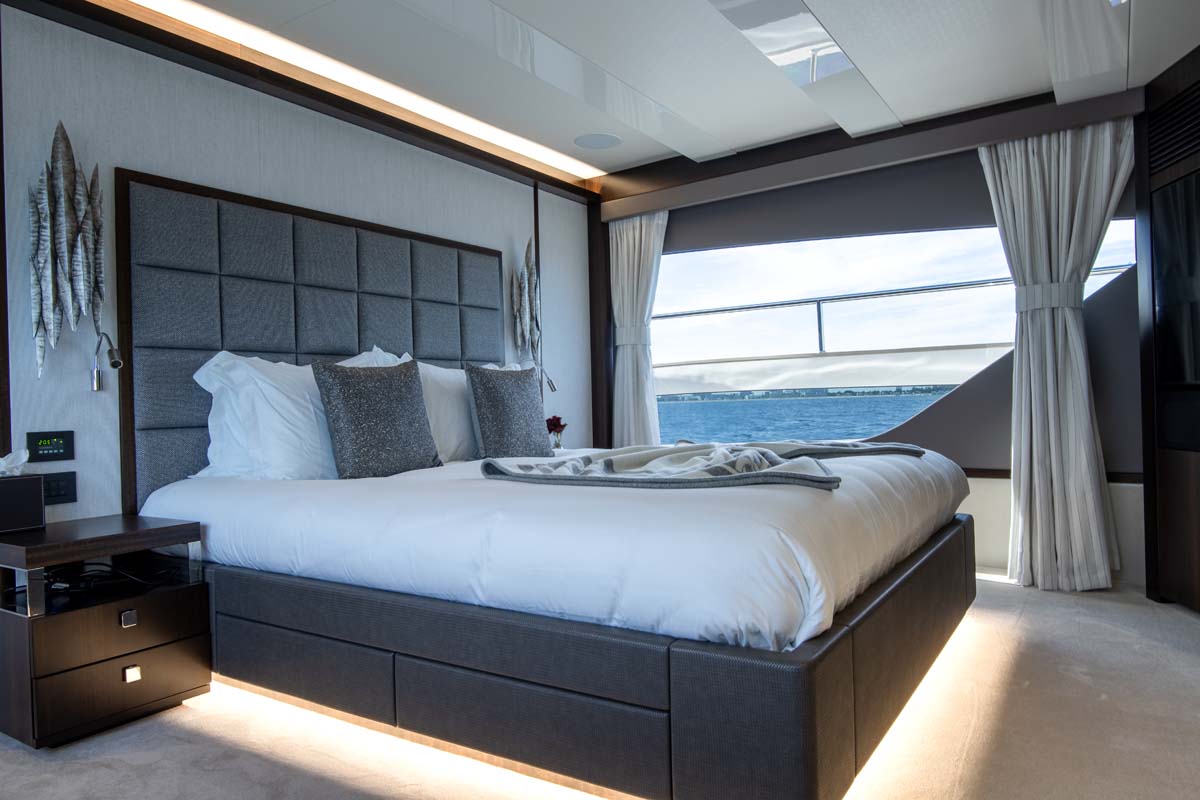With a layout that prioritises space and flow, NIGORA feels larger than her 28 metres. A raised pilothouse leaves impressive volume on her main deck, while a rare, full-beam master suite on the main brings a level of privacy more often reserved for yachts over 30 metres.