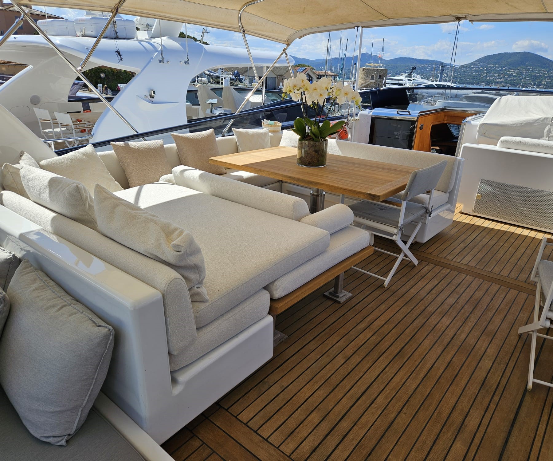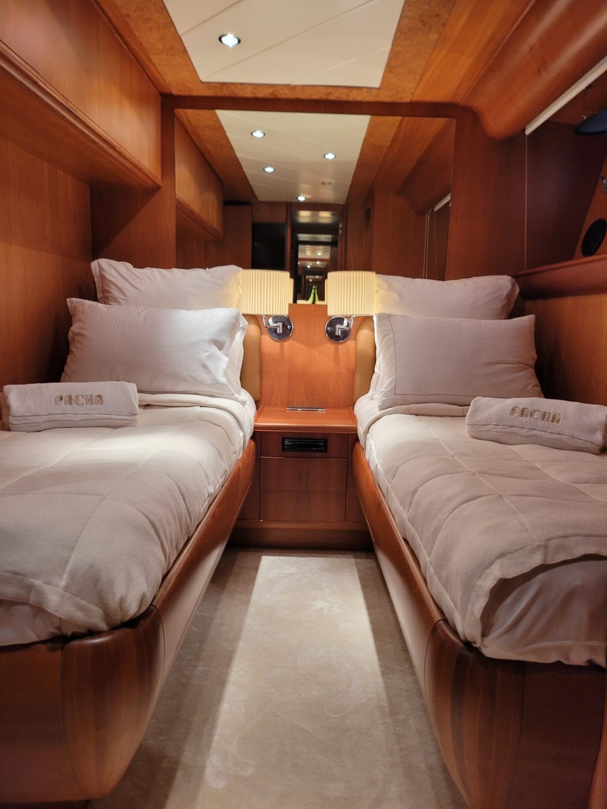 A 27.2-metre Canados, PACHA marries classic Italian styling with modern functionality, creating a yacht that feels both elegant and inviting. Designed for families and friends, her interiors are bright, modern, and relaxed, with a master suite, VIP cabin, and two twins on the lower deck, plus a comfortable TV room. Warm tones, natural light, and contemporary touches make every space feel effortlessly stylish while prioritising comfort.