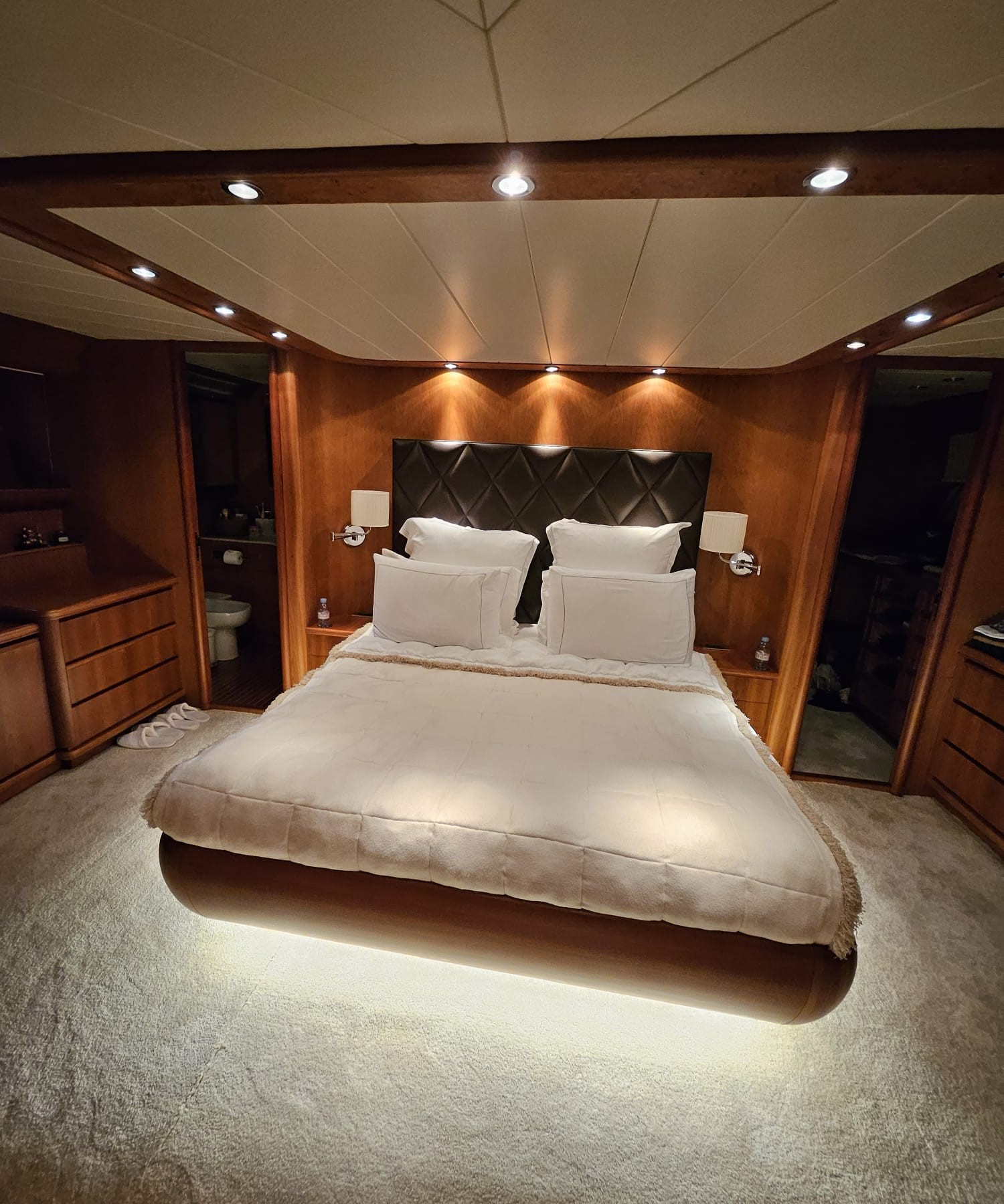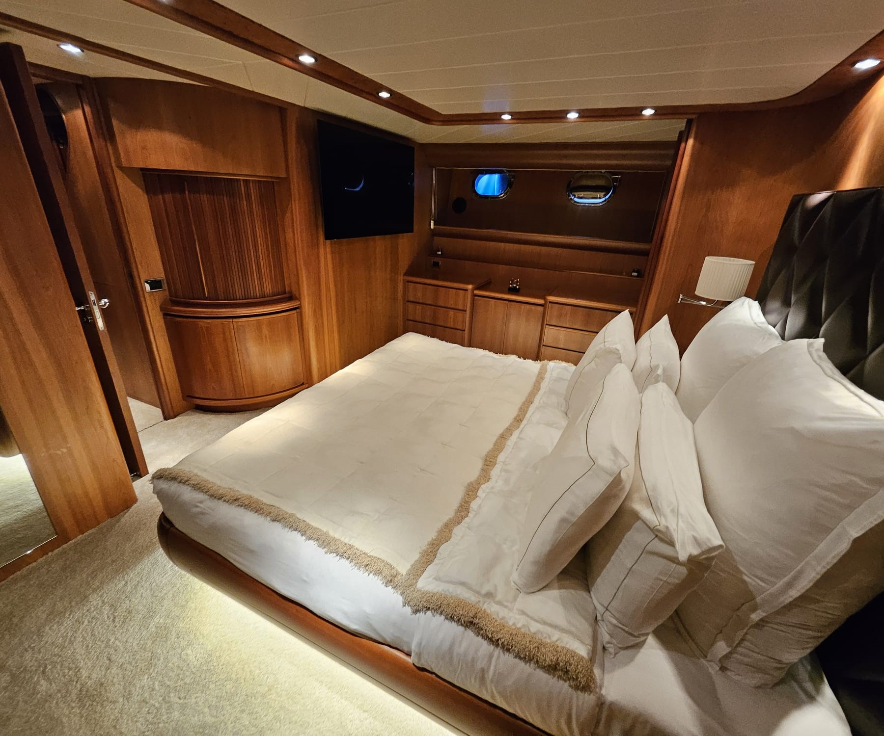 - 01 — 03 For a yacht of 27.2 metres, the master cabin feels notably generous, offering a sense of space and calm at the end of each day.