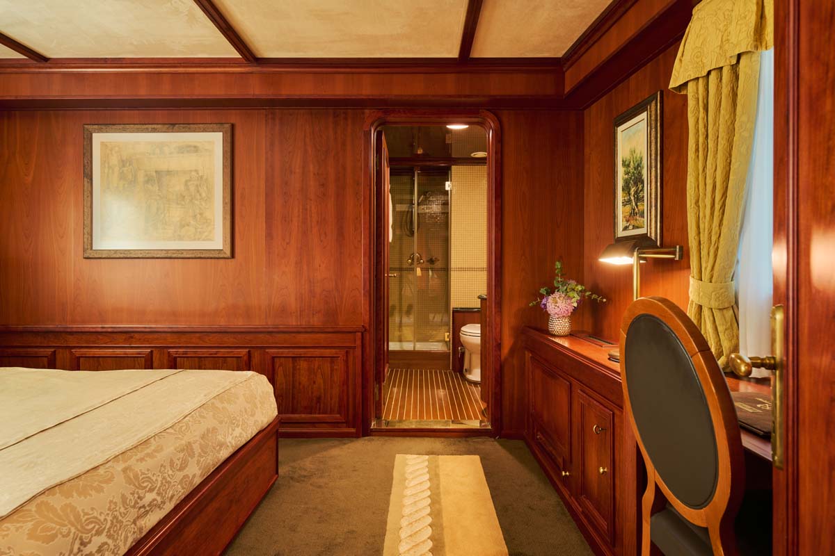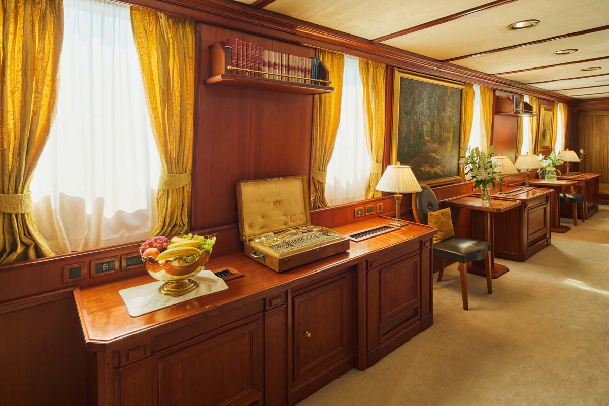 - 03 — 03 She boasts a seven-stateroom layout with Art Nouveau elements throughout—inspired by her initial inception from Italian blueprints dating back to the 1930s.