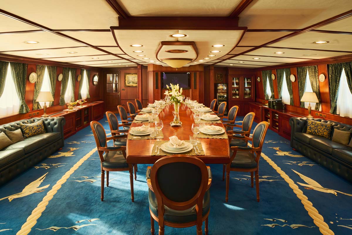 But her story began well before that, on the drawing boards of an Italian design firm in the 1930s. Her blueprints survived the war, eventually finding their way to Pula, Croatia, where a well-known shipyard, Uljanik, captured the golden age of ocean liners in her exterior profile—a single glance and it’s obvious she is of a different era.